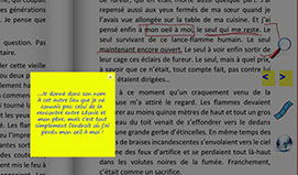 Mais ce qui est bien plus fun est que "L" nous en a confié un exemplaire que Lucky avait lui-même rempli de post-it ces derniers temps. On voit bien alors dans ces notes comment il s'est pris le chou pour comprendre ce truc pas possible qu'il a écrit à l'époque, et surtout quel secret ça cachait ! Tu peux alors lire seulement les notes ; il y a des flèches directionnelles pour sauter de l'une à l'autre, soit tout lire, à toi de voir.